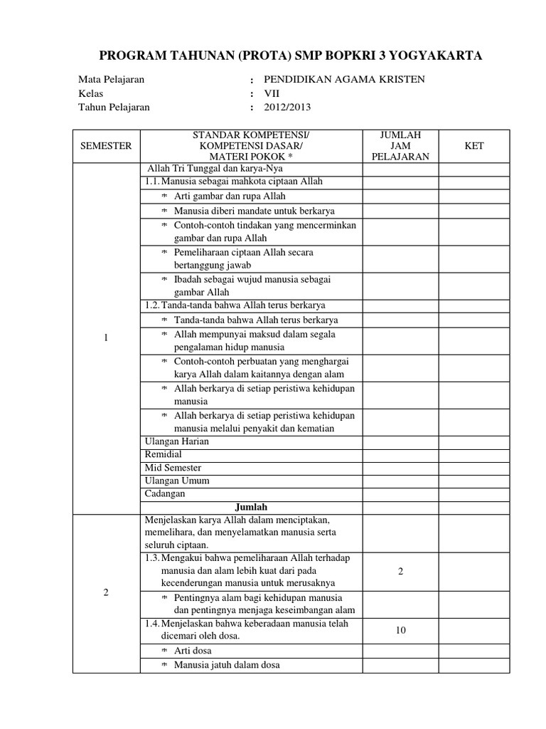 Prota Promes Pendidikan Agama Kristen Sd Kurikulum 2013 Masnurul from cdn.slidesharecdn.com Arsip buku pendidikan agama kelas ii 2 sd kurikulum 2013 revisi 2017. Promes pendidikan agama katolik sd berikut ini adalah promes pendidikan agama katolik sd yang bisa anda download secara gratis di website kami. Download rpp kelas 4 kurikulum 2013 k13 revisi tahun 2017. Cd rpp sd revisi terbaru sudah mengikuti anjuran menteri sesuai dengan permendikbud anyar dengan format 1 lembar untuk kelas 1, kelas ii, kelas 3, kelas iv, kelas v, & kelas 6, sudah lengkap dengan silabus, rpp, prota, promes, kkm, kikd dan Cd rpp mapel pak protestan bp untuk sd kelas 1 6 semester 1 2. Soal ulangan pendidikan agama kristen kelas iv.docx soal agama kristen soal pendidikan agama kristen populer soal agama kristen kelas 4 dan kunci jawabannya kelas 4 sd pendidikan agama kristen dan budi pekerti guru 2017 … Sedangkan prota dan promes pai dan bp kelas 3 k13 revisi 2018 yaitu perangkat pembelajaran agama islam dan budi pekerti, yang memuat mata pelajaran, satuan pendidikan, tahun pelajaran, dan kelas. Prota agama kristen kurikulum 2013 sd berikut ini adalah prota agama kristen kurikulum 2013 sd yang bisa anda download secara gratis di website kami.