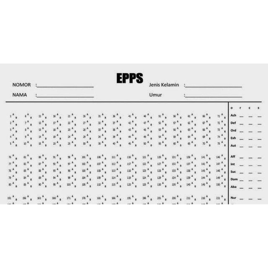 Merupakan tes kepribadian yang disusun pertama kali sebagai alat riset dan konseling, yang dengan cepat dan mudah mengukur sejumlah variable. Edwards dari universitas washington usa. Tes epps (edwards personal preference schedule) adalah tes kepribadian yang mengukur tingkat individu dalam 15 kebutuhan dan motivasi umum. Tes epps (edward personal preference schedule), mengukur 15 trait (aspek kepribadian), berdasarkan teori human neds oleh h. Saat tes epps kita akan diminta untuk memilih kecenderungan (yang kita sukai) atau sifat yang melekat pada diri kita sendiri diantara 2 pernyataan. Tes epps, 15 aspek kepribadian yang di ukur. Namun sebenarnya psikotes itu sendiri juga ada yang berupa tes kepribadian. Memperoleh data dan gambaran skor tes epps, agar dapat menghasilkan norma. Rahasia tes epps sebenarnya terletak pada cara skoringnya yang nanti akan saya jelaskan di bawah. Tes edward personal preference schedule atau tes epps adalah sebuah tes kepribadian yang terdiri atas beberapa pilihan yang mencerminkan diri seseorang. Norma memberi gambaran tentang kondisi subyek. Alat tes ini dilandaskan dan berkembang dari teori kepribadian seseorang ahli bernama h. Murray tentang kebutuhan (human needs).